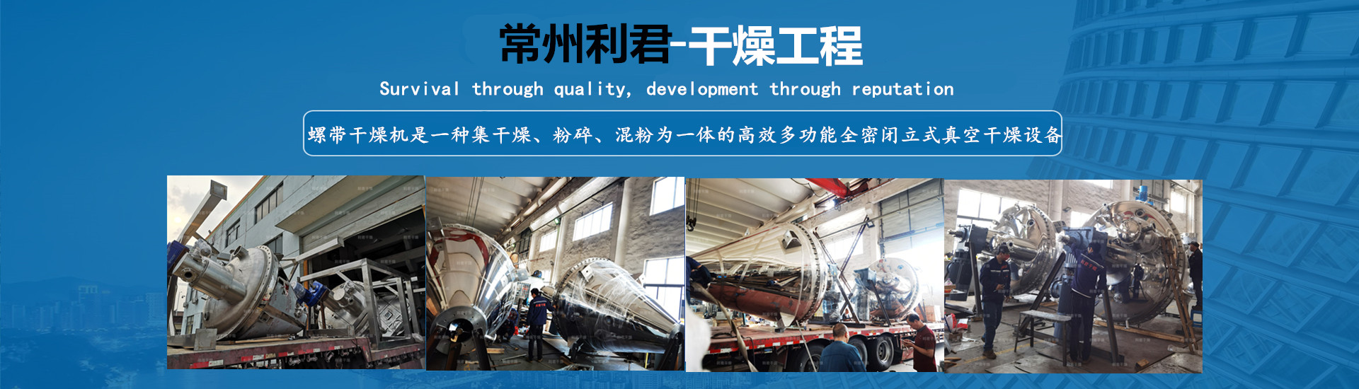 以質(zhì)量求生存,以信譽求發(fā)展,已擁有干燥、制粒、混合、粉碎、除塵、篩分、干法、濕法、脫硫、換熱、濃縮、反應、儲存、蒸餾等多種系列上百個規(guī)格